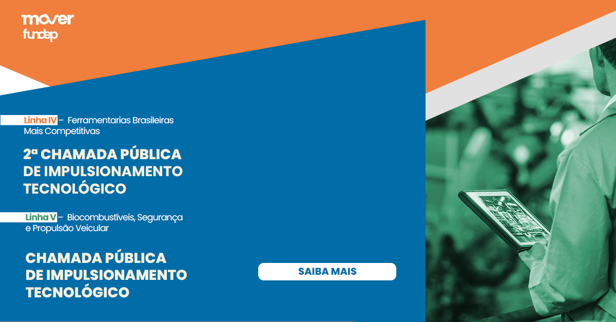 Com as Chamadas de Impulsionamento Tecnológico, a Fundep busca potencializar projetos dos programas prioritários do Mover, coordenados pela fundação, que já demonstraram resultados relevantes e seguem com potencial de avanço para o setor automotivo nacional.